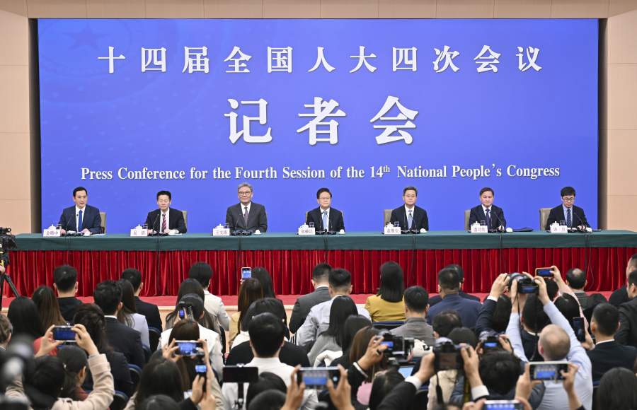 十四届全国人大四次会议新闻中心主任、全国人大常委会办公厅新闻局局长 金晴中:中外记者朋友们,大家下午好!欢迎大家参加十四届全国人大四次会议记者会,本场记者会的主题是经济主题。大会新闻中心很高兴邀请到五位嘉宾出席记者会,分别是:国家发展和改革委员会主任郑栅洁先生,财政部部长蓝佛安先生,商务部部长王文涛先生,中国人民银行行长潘功胜先生,中国证券监督管理委员会主席吴清先生。