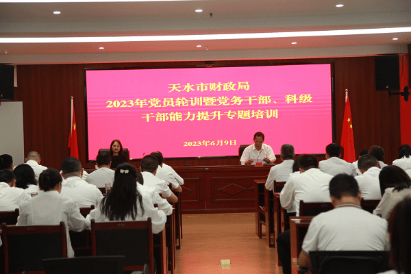 为深入学习贯彻党的二十大精神,扎实推进“三抓三促”行动走深走实,进一步增强基层党组织书记、党务干部、科级干部政治素养和履职能力,全面提升基层党建工作水平,按照党员集中轮训工作安排,6月9日,市财政局举办2023年党员轮训暨党务干部、科级干部能力提升专题培训班。局直属机关党委书记张海平主持开班式并作动员讲话,局属各党支部书记、党务干部、纪检委员、党员、“双培双融双提升”对象、科级干部共计90余人参加培训。