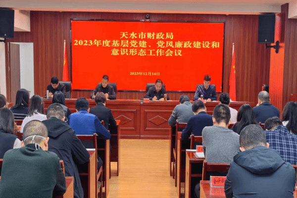 12月14日,天水市财政局召开2023年度基层党建、党风廉政建设和意识形态工作会议。会议深入学习贯彻中央、省、市全面从严治党决策部署,回顾总结今年基层党建、党风廉政建设和意识形态工作,查找其中的不足,安排部署下一阶段重点工作任务。局党组书记、局长张宪泉同志出席会议并讲话,市纪委监委派驻市委统战部纪检监察组副组长杨宏同志到会指导并讲话,局系统全体干部职工参加会议。