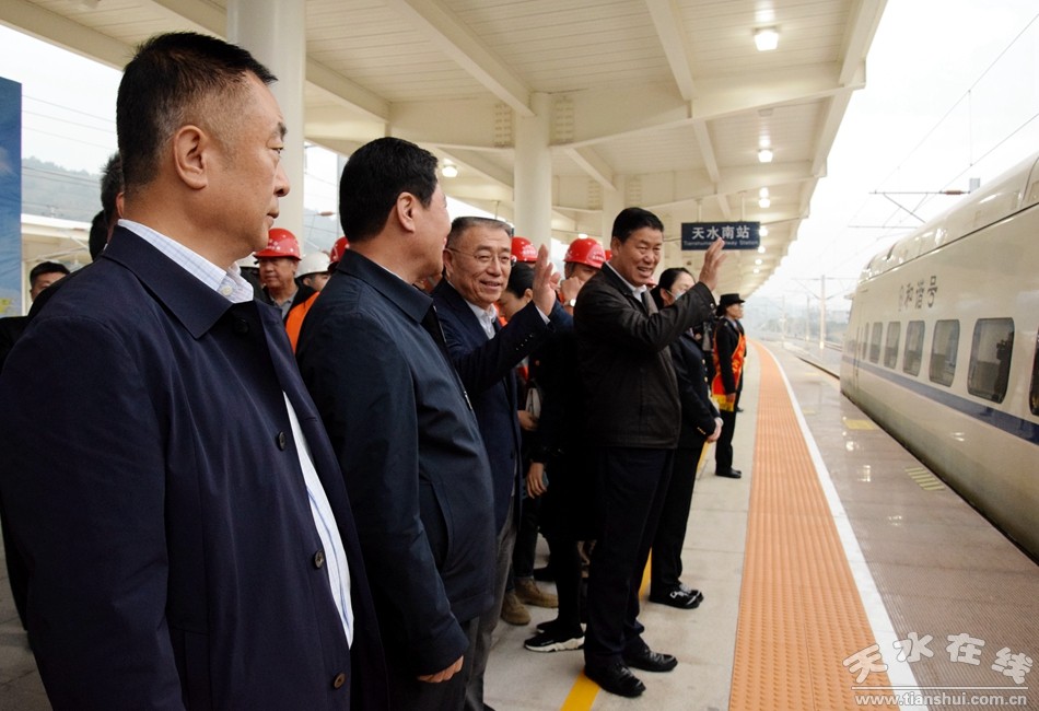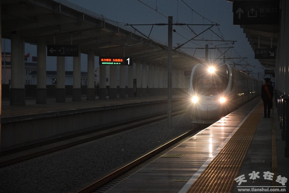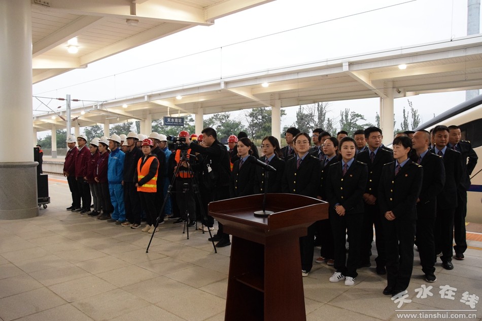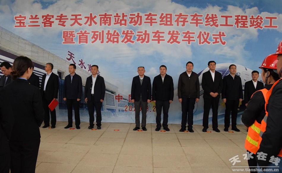 (宝兰客专天水南站动车组存车线工程竣工暨首列始发动车发车仪式在天水南站站台举行)