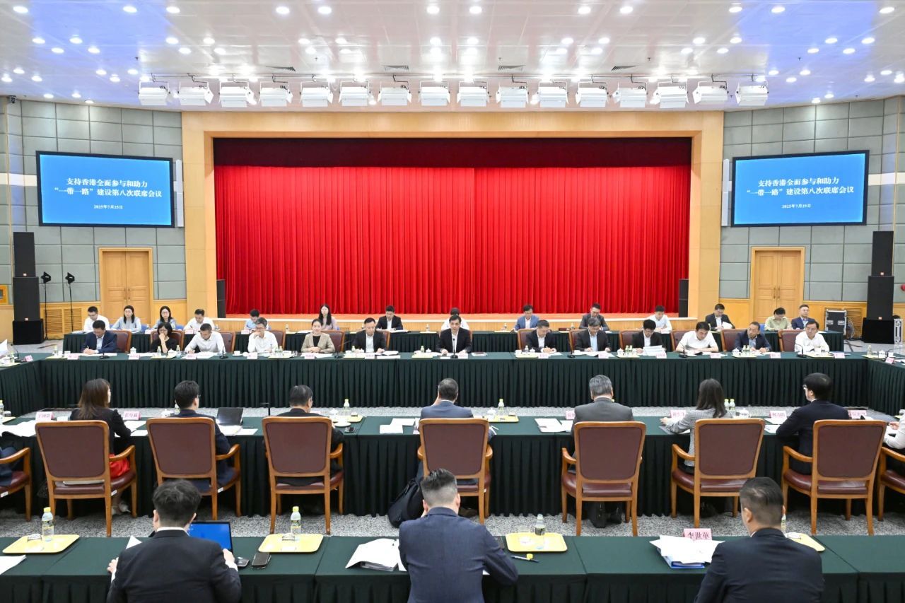 中央港澳办、最高人民法院、外交部、科技部、司法部、商务部、交通运输部、中国人民银行、国务院国资委、金融监管总局、中央政府驻香港联络办,以及香港特别行政区政府律政司、商务及经济发展局、财经事务及库务局、创新科技及工业局、发展局、环境及生态局、商经局“一带一路”办公室、驻北京办事处、香港贸易发展局、香港机场管理局的代表参加会议。