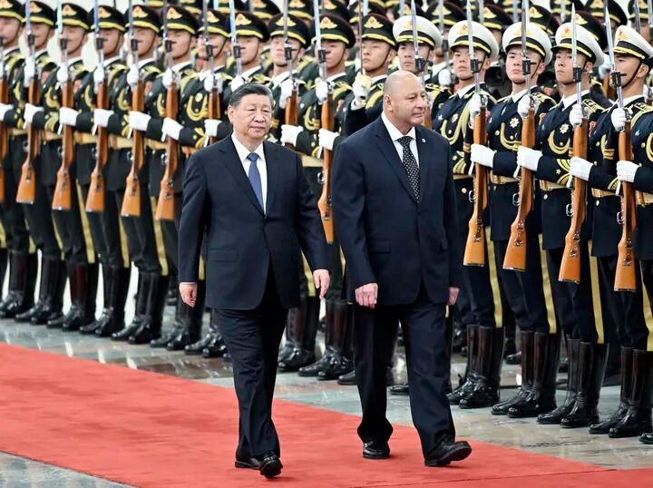 11月25日上午,国家主席习近平在北京人民大会堂会见来华进行国事访问的汤加国王图普六世。这是会见前,习近平在人民大会堂北大厅为图普六世举行欢迎仪式。新华社记者 殷博古 摄