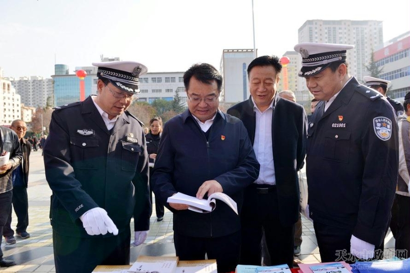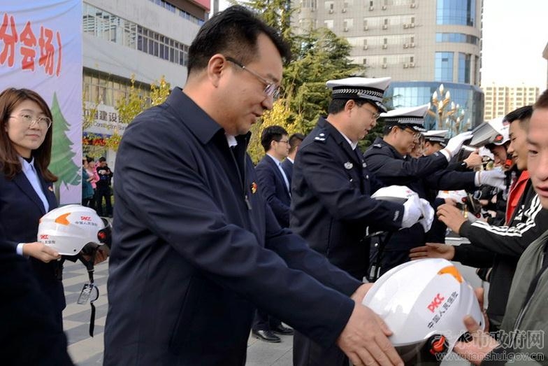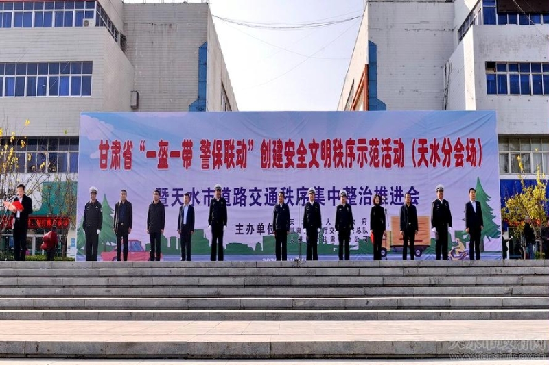 为深入贯彻落实全国、全省预防道路交通事故会议精神,持续推动道路交通安全源头治理和综合整治,在全社会掀起新一轮“一盔一带”安全守护行动和道路交通秩序集中整治的热潮,全面提升全市道路交通安全管理水平,11月10日,天水市政府、省公安厅交警总队、人保财险甘肃省分公司在秦州区龙城广场联合举办甘肃省“一盔一带 警保联动”创建安全文明交通秩序示范活动暨天水市道路交通秩序集中整治推进会。副市长、市公安局党委书记、局长郭庆祥,省公安厅交警总队副总队长朱来胜,人保财险甘肃省分公司副总经理董怡出席活动。