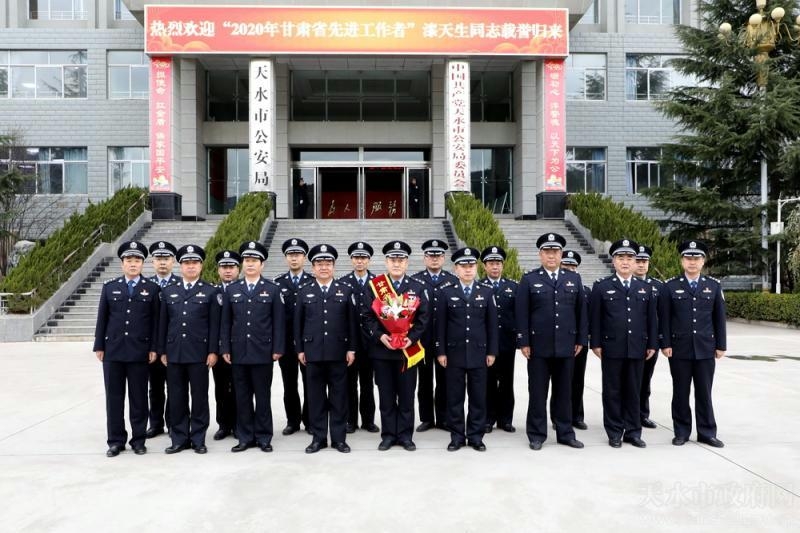 12月8日,赴兰参加“2020年甘肃省劳动模范和先进工作者表彰大会”的天水市公安局秦州分局信访室主任漆天生载誉归来,市、区两级公安机关在市公安局举行欢迎仪式,副市长、市公安局党委书记、局长郭庆祥参加仪式并主持座谈。