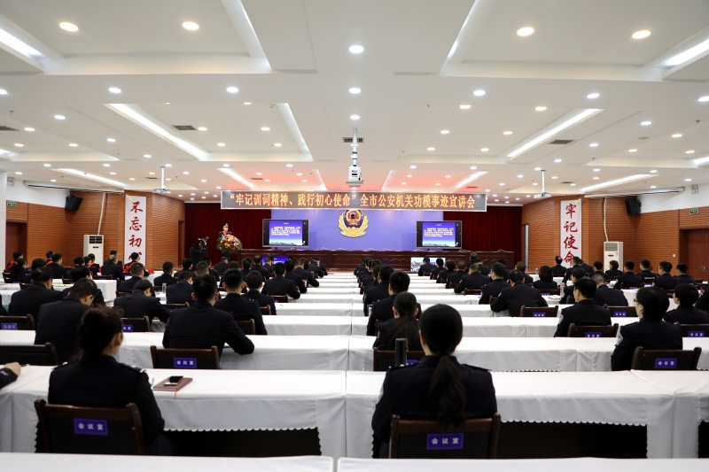 1月8日上午,全市公安机关“牢记训词精神、践行初心使命”功模事迹宣讲会在市公安局三楼会议室举行。副市长、市公安局党委书记、局长郭庆祥参加会议并讲话,会议由市公安局党委副书记、常务副局长乔振华主持。市公安局在家党委班子成员、高级警长、机关全体民警在主会场参加会议,会议以视频形式开至基层派出所。