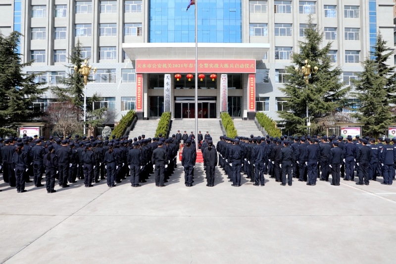 为深入推进全警实战大练兵,强化全市公安机关民警素质能力建设,提升应对防范重大风险、维护安全稳定的能力水平,努力打造一支政治过硬、业务过硬、责任过硬、纪律过硬、作风过硬的陇原铁警队伍。3月1日,天水市公安局举行全市公安机关2021年春季全警实战大练兵启动仪式。受副市长、市公安局党委书记、局长郭庆祥委托,局党委副书记、常务副局长乔振华作动员讲话。局党委委员、副局长李振瑞主持启动仪式。市公安局在家党委班子成员,机关全体民警参加启动仪式。