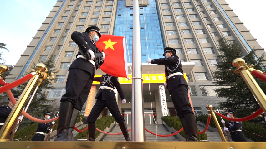 迎着初升的朝阳,伴随着嘹亮的国歌,五星红旗冉冉升起,全体民警肃穆而立,集体唱国歌,向国旗敬礼,表达对祖国的忠诚和热爱。