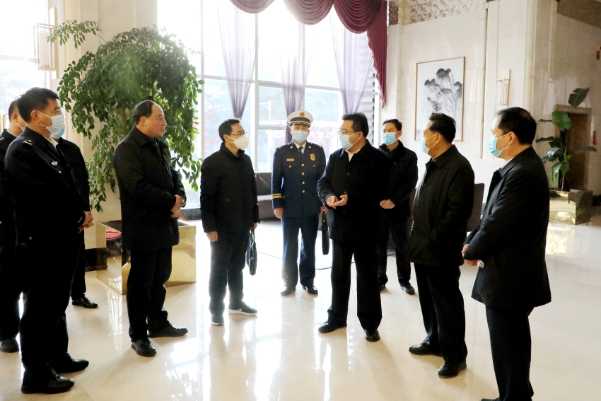 12月19日上午,市人大常委会副主任索鸿宾,副市长、市公安局局长郭庆祥,市政协党组成员、副主席候选人吴立新带领公安、信访、应急管理、市场监管、卫健、消防等部门负责同志,深入“两会”主场地天水宾馆、秦州大剧院和参会代表委员驻地金龙大酒店、华天电子宾馆,检查指导全市“两会”安保工作。市人大常委会秘书长杨坤一同检查。