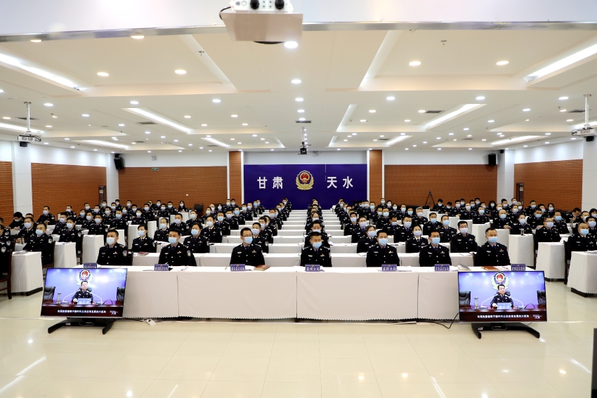 2月17日,天水市公安局召开全市公安局长会议,深入学习贯彻习近平总书记关于政法工作的重要指示,认真贯彻落实中央、省委、市委政法工作会议精神,全国、全省公安(厅)局长会议及市第八次党代会精神,传达余建副省长和张永霞书记、王国先市长等领导对全市公安工作的批示要求,总结成绩,分析形势,研究部署2022年全市公安工作。副市长、市公安局党委书记、局长郭庆祥出席会议并讲话。