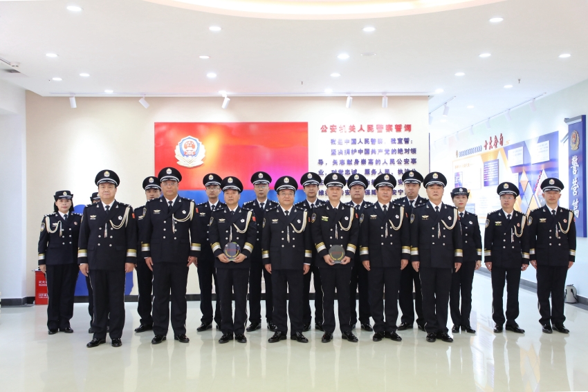 最后,在家局党委班子成员和部分民警代表与缑西保、毛建民同志合影留念。