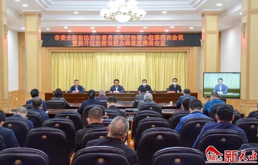 4月15日,天水市召开市委全面依法治市委员会执法协调小组第四次会议暨提升法治建设群众满意度推进会。会议通报了2021年法治建设群众满意度测评工作情况和2021年全市行政复议与行政应诉案件纠错情况。市委全面依法治市委员会执法协调小组组长、副市长、市公安局局长郭庆祥参加会议并讲话,市政府副秘书长毛利春主持会议。