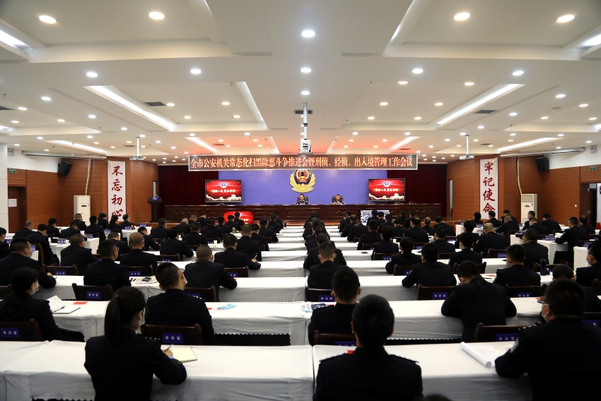 各分县局分管局领导和刑侦、经侦、出入境、刑科室、扫黑办、反电诈大(中)队负责同志,市局局属相关部门负责人和刑警支队、经侦支队、出入境管理局全体民警参加会议。