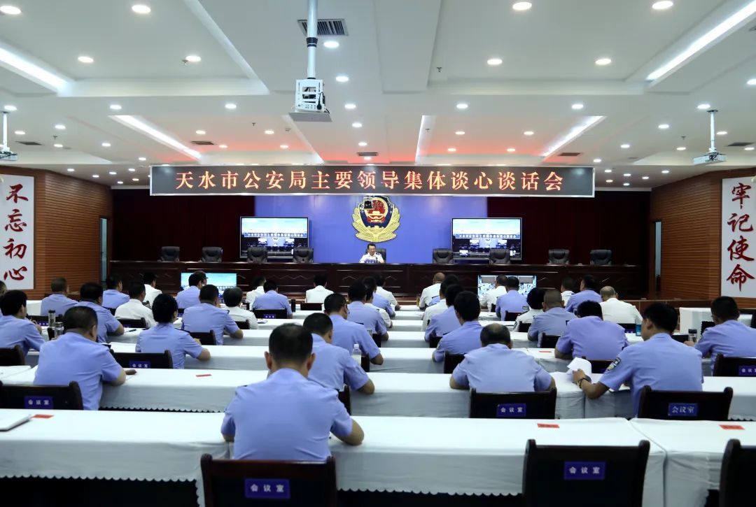9月2日上午,天水市公安局党委召开集体谈心谈话会,深入学习贯彻习近平新时代中国特色社会主义思想,认真贯彻落实市委市政府和省公安厅党委部署要求,压紧靠实全面从严管党治警主体责任,检视分析问题,自我加压奋进,就全力推动重点工作争创一流、走在前列开展集体谈心谈话。副市长、市公安局党委书记、局长郭庆祥主持会议并讲话。