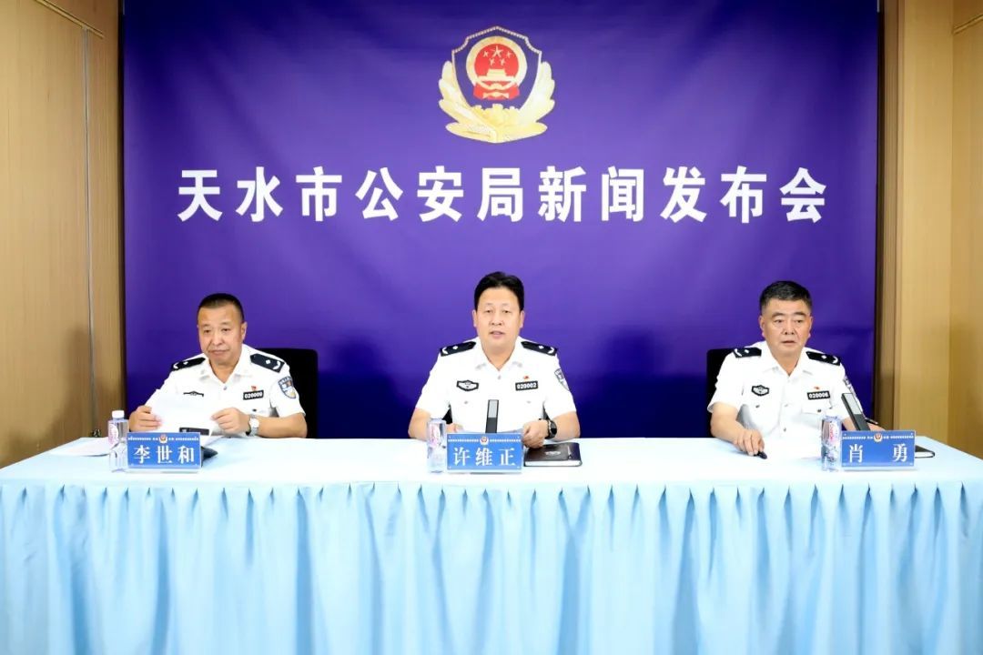 9月20日上午,天水市公安局在市局融媒体中心召开全市公安机关夏季治安打击整治行动新闻发布会,市公安局党委副书记、常务副局长、新闻发言人许维正主持发布会并通报有关情况。市公安局党委委员、副局长肖勇,市公安局党委委员、副局长李世和现场回答记者提问。甘肃日报、兰州晨报和天水市融媒体中心等省、市新闻媒体记者应邀参加发布会。