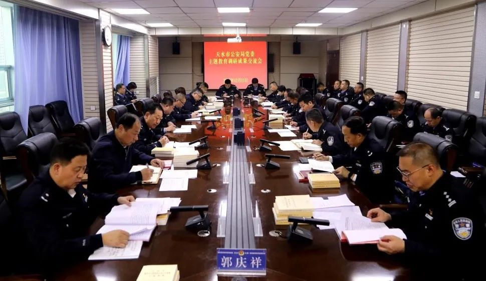 按照市委关于主题教育部署要求,12月11日,天水市公安局党委召开学习贯彻习近平新时代中国特色社会主义思想主题教育调研成果交流会,深入学习贯彻习近平总书记关于调查研究的重要论述,集中交流研讨调研情况,对推进调查研究成果转化、推动主题教育走深走实进行再强调再部署。副市长、市公安局党委书记、局长郭庆祥主持会议并讲话。