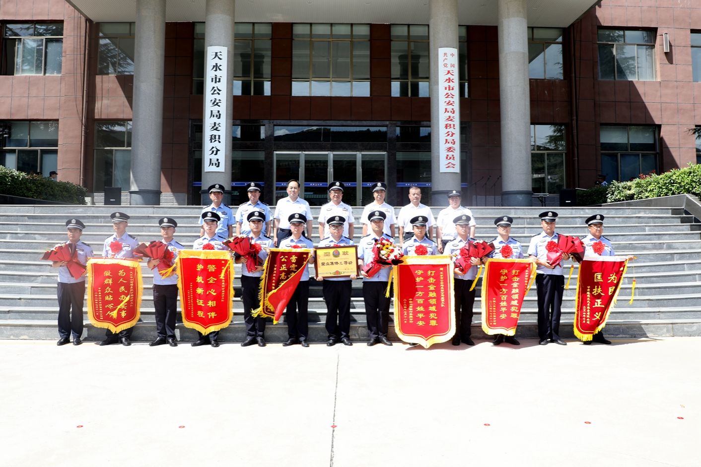 为表彰先进、鼓舞士气、激励斗志,7月18日,天水市公安局在麦积分局开展“夏季行动”送奖到一线活动,副市长、市公安局党委书记、局长郭庆祥出席活动并讲话。市公安局党委委员、副局长李世和出席活动,市公安局党委委员、政治部主任张旭宣读记功奖励令,麦积区委常委、政法委书记强永斌出席活动。活动由麦积区副区长、公安分局党委书记、局长王禳虎主持。