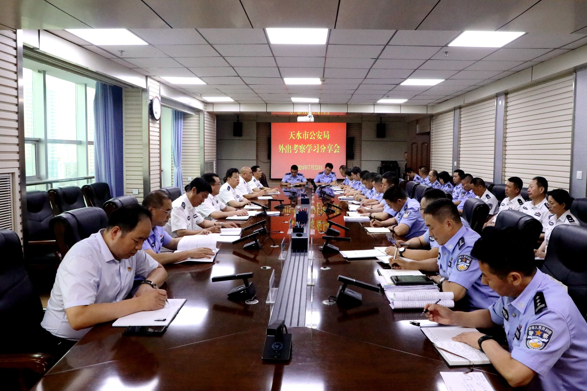 7月23日,天水市公安局召开外出考察学习分享会,介绍赴陇南市公安机关交流学习情况,谈感想体会,找差距不足,谋发展思路。副市长、市公安局党委书记、局长郭庆祥主持会议并讲话,市公安局党委班子成员、副局长,各分县局局长,局属相关部门负责人参加会议。