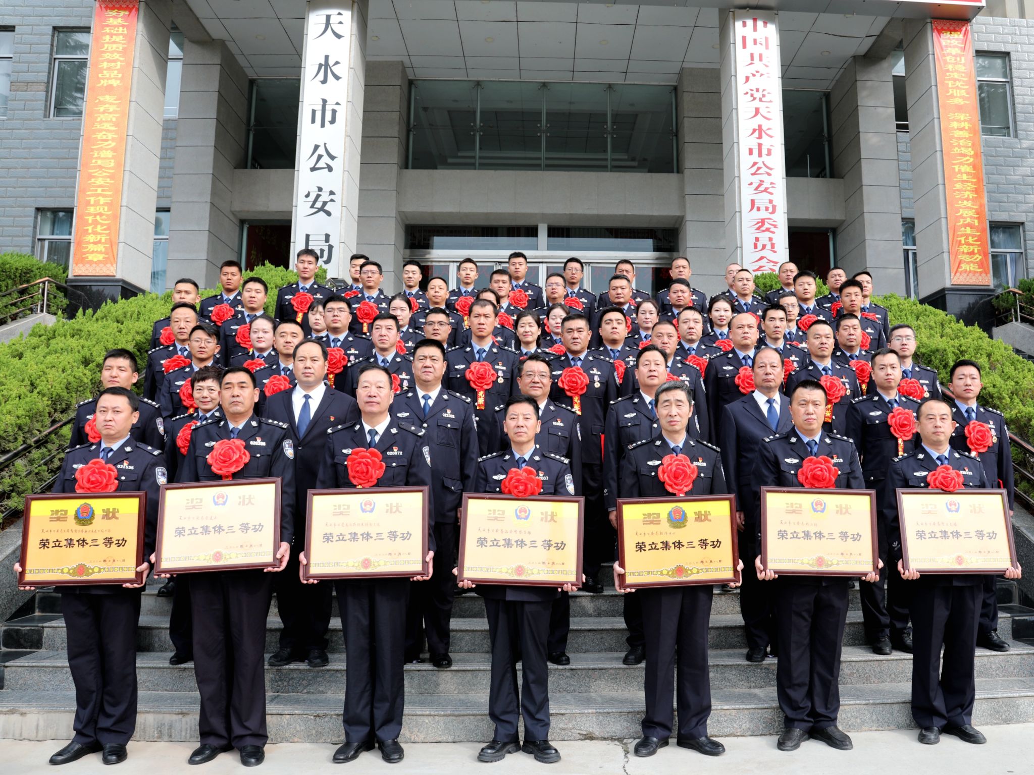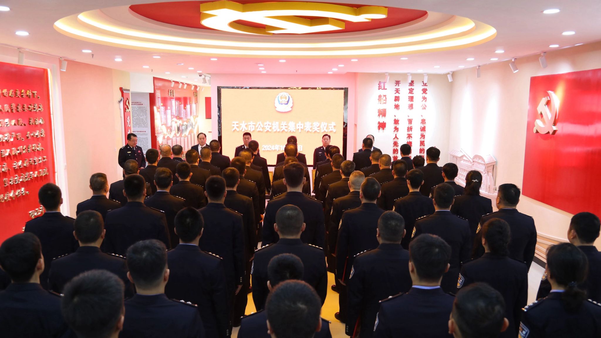 10月18日上午,天水市公安机关举行集中表奖仪式,副市长、市公安局党委书记、局长郭庆祥在市局机关出席仪式并讲话,代表市局党委向受到表彰的集体和个人表示热烈祝贺,向长期以来倾力推动全市公安工作奋勇争先、争创一流、走在前列的广大民辅警表示衷心感谢、致以诚挚慰问。