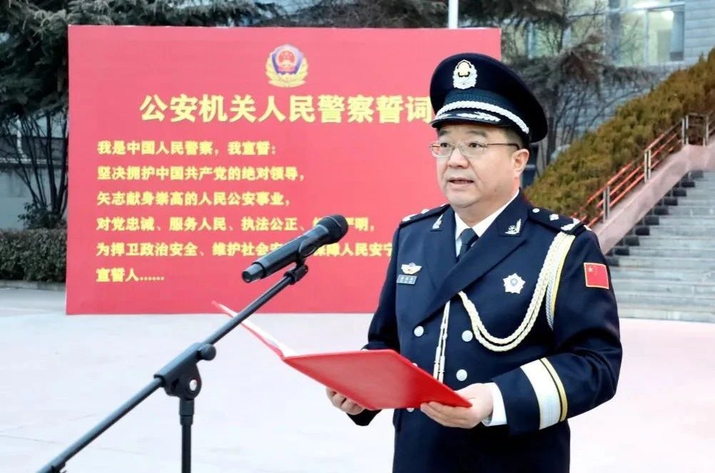 副市长、市公安局党委书记、局长郭庆祥领誓《公安机关人民警察誓词》并讲话。市公安局党委副书记、常务副局长许维正主持仪式。市公安局党委班子成员、全体民警,以及2024甘肃“最美基层民警”赵卫强和其妻子杨芳、麦积分局主要负责同志参加仪式。