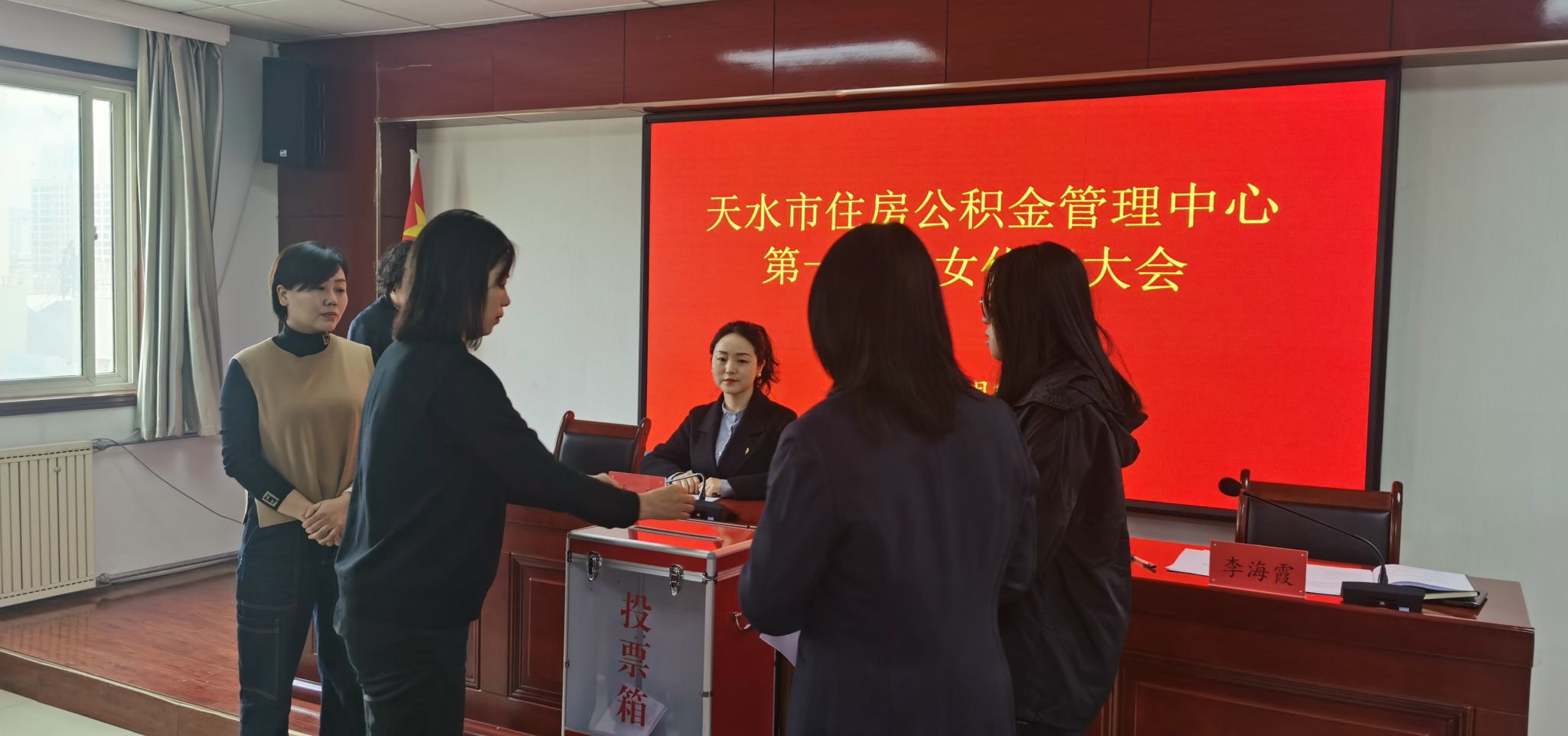 会议在庄严的国歌声中拉开帷幕。会上,市妇联组宣部副部长陈琳同志宣读了《天水市妇女联合会关于天水市住房公积金管理中心成立妇女联合会的批复》。表决通过了《天水市住房公积金管理中心第一次妇女代表大会选举办法》(草案)、总监票人、监票人名单,总计票人和计票人名单。会议采取无记名投票方式,选举产生7名同志为中心妇联第一届执委会委员。选举杨婷同志为市住房公积金管理中心妇女联合会第一届执委会主席,陈燕、李海霞同志为副主席。新当选的中心妇联主席杨婷同志进行了表态发言。