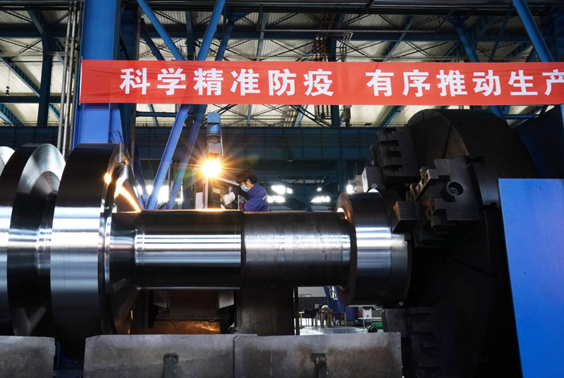 4月10日,工人在位于黑龙江省齐齐哈尔市的中国一重集团有限公司车间进行生产作业。新华社记者 王建威 摄