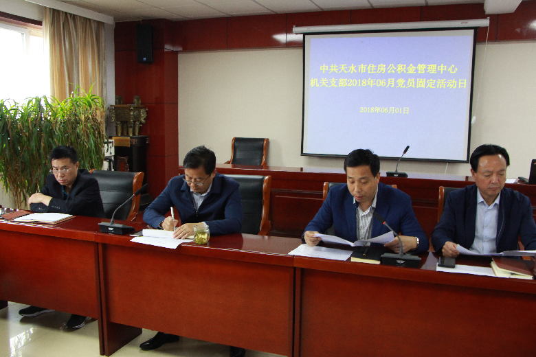 6月1日下午,天水市住房公积金管理中心召开了“党员固定活动日”大会。中心党组书记、主任张长平出席大会并讲话,大会由中心党总支书记、副主任杨志炜主持。中心机关全体党员及管理部负责人参加大会。