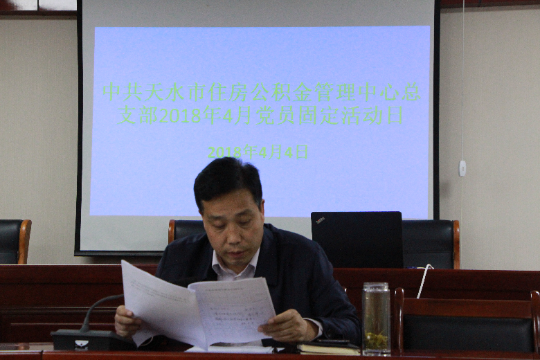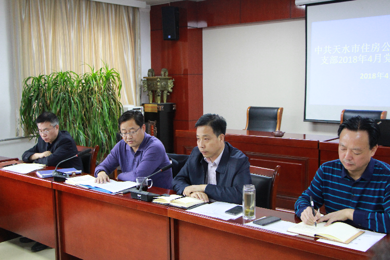 张长平传达了“4月2日全省住房公积金工作座谈会”会议精神,并围绕会议精神安排了中心2018年的重点工作;杨志炜领学了《中共天水市委常委会贯彻中央八项规定精神进一步加强作风建设的实施办法》并安排了支部规范化建设推进工作的有关事宜;会议还传达学习了《关于对全市近期基层党建工作重点任务落实情况进行督查的通知》和直机关工委关于《2018年机关党建工作要点》的通知》。