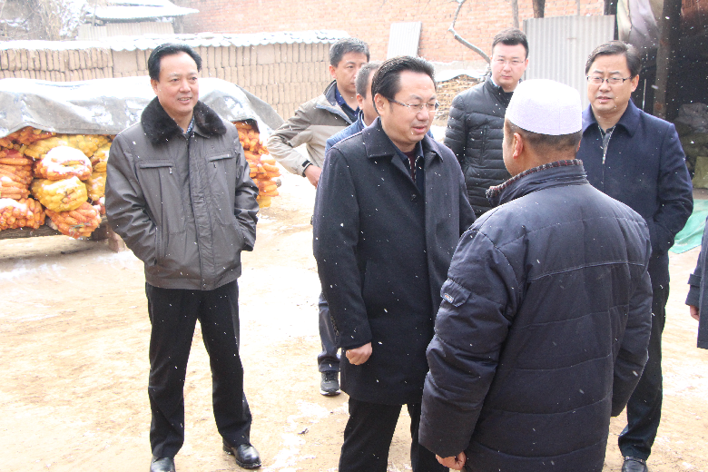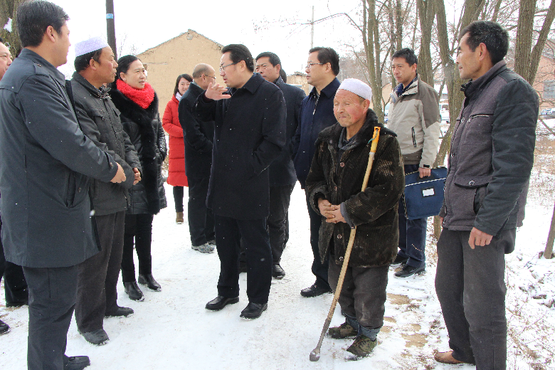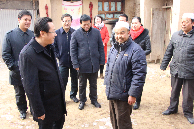 1月10日上午,市政府副市长何东带领政府办公室和市住房公积金管理中心负责人冒雪深入张家川回族自治县赵阳村开展“双联”走访调研。市政府副秘书长杨胜利,市住房公积金管理中心主任张长平、副主任胡永平,张家川县委副书记夏草,县委常委、副县长赵东红,县委常委、张家川镇党委书记苏红娟一同走访。