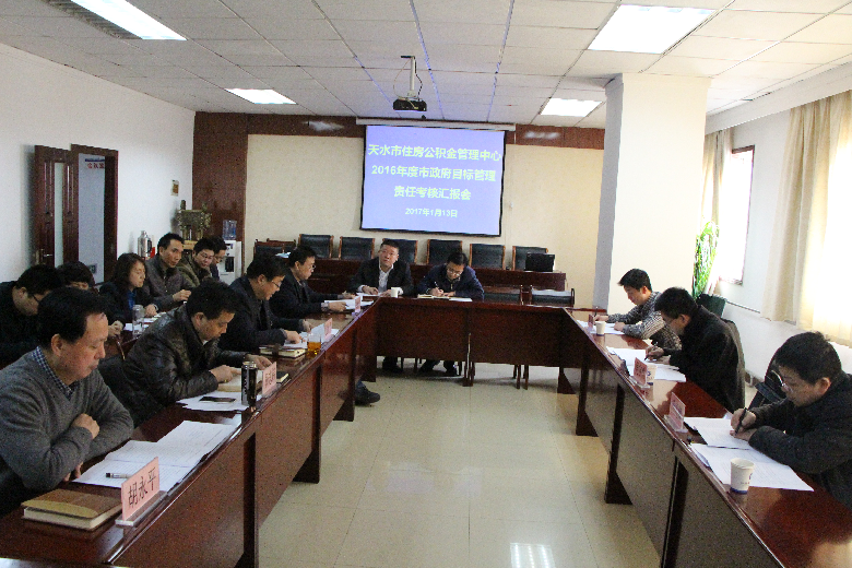 1月13日上午,天水市住房公积金管理中心召开2016年度市政府目标管理责任考核大会。市政府第一考核组组长、市纪检委正县级纪检员吴方勇对市公积金中心2016年度目标责任考核工作提出具体要求。市住房公积金管理中心主任张长平主持会议并代表领导班子作报告。考核组成员:市水土保持局副局长杨高麟、市政府督查室科长高峰出席会议,市住房公积金管理中心班子成员及副科级以上干部参加了考核大会。