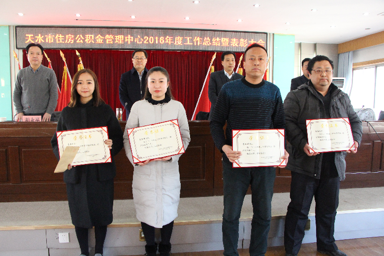 1月22日,天水市住房公积金管理中心召开2016年度工作总结暨表彰大会,会议对2016年先进集体和先进个人进行了表彰。中心党组成员、副主任杨志炜做了2016年工作总结及2017年工作打算,中心党组书记、主任张长平对2017年工作作了安排。中心副主任胡永平主持会议。中心全体干部职工参加了会议。