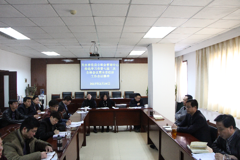 2月24日下午,天水市住房公积金管理中心党组书记、主任张长平主持召开学习会,传达学习市委七届二次全体会议暨全市经济工作会议精神和市纪委七届二次全体会仪精神,中心机关全体人员、管理部负责人参加会议。