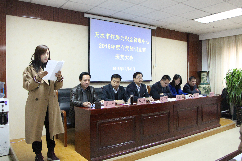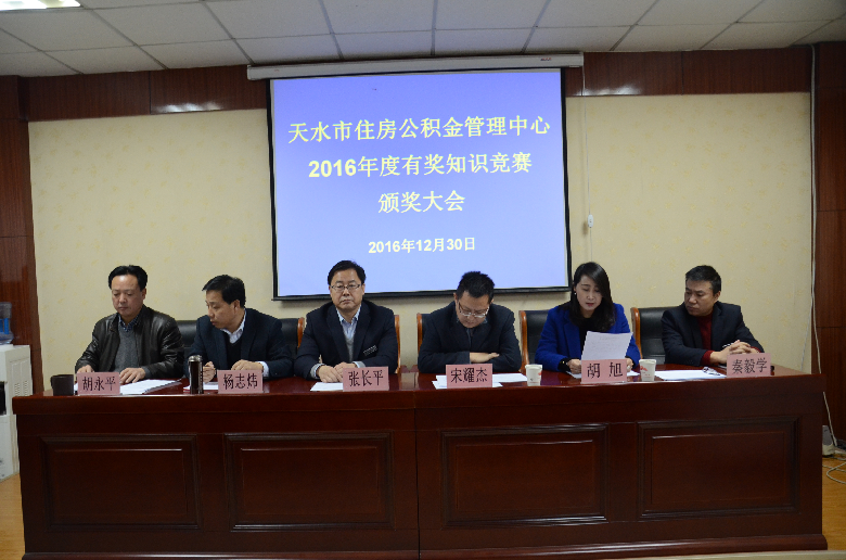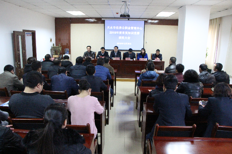 12月30日,天水市住房公积金管理中心有奖知识竞赛颁奖大会在市中心7楼会议室召开,天水日报社副总编宋耀杰、天水在线市场部经理胡旭、公积金中心党组书记、主任张长平出席了本次颁奖大会。会议由中心副主任胡永平主持。中心党组成员、机关全体干部职工和部分获奖人员参加了会议。