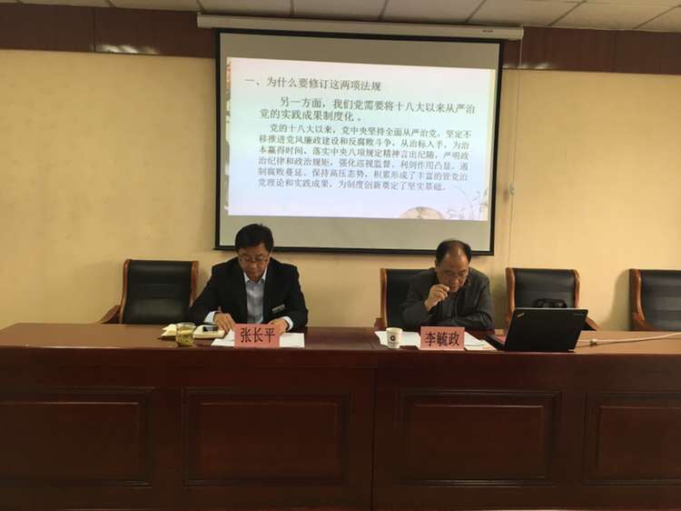 李毓政同志就《中国共产党党内监督条例》和《中国共产党纪律处分条例》做了详细解读。李毓政指出这两个条例的颁布实施,其现实意义和深远的历史意义是非常重大的。“两个条例”的实施对于加强党风廉政建设和干部队伍建设,全面提升中国共产党的执政水平具有“里程碑”的意义。我们每个共产党员要从现在做起,从自身做起,不仅要认真学习好“两个条例”,而且更要身体力行“两个条例”,用自己的实际行动实现党中央对广大党员尤其是各级领导干部的“政治要求”。
