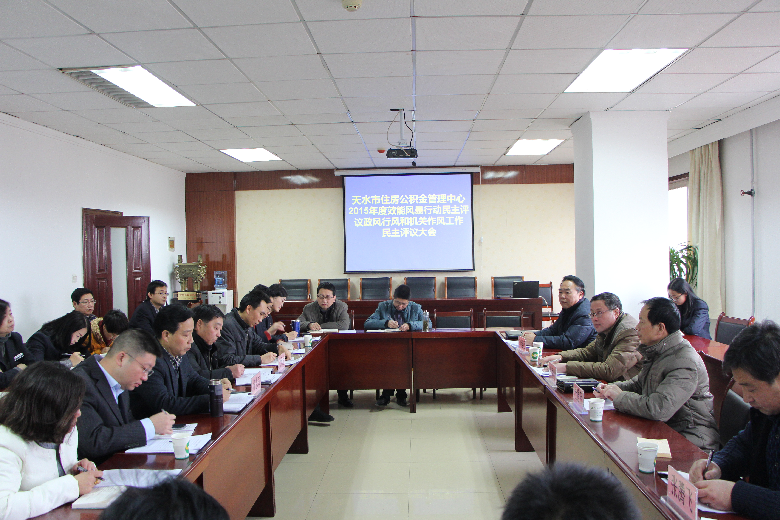 12月17日,天水市住房公积金管理中心召开2015年度效能风暴行动民主评议政风行风和机关作风工作民主评议会议。市效能风暴行动协调推进领导小组办公室副主任、市直机关工委书记雒建明出席会议并讲话。会议由市效能风暴行动民主评议第六组副组长李维亚主持。市效能风暴行动民主评议第六组组长杜建芳、组员张腾飞,住房公积金管理中心缴存单位代表以及全体机关干部职工参加了此次会议。