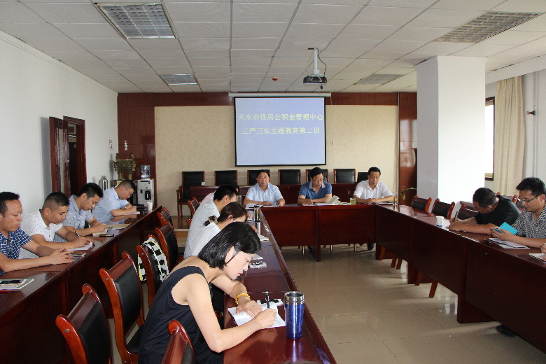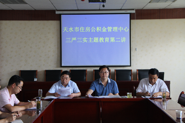 8月10日,天水市住房公积金管理中心举办第二次“三严三实”专题教育党课。党课由中心党组书记,主任张长平主持。中心全体党员参加了专题教育党课。中心党组成员,副主任吴承宗学习传达《中共中央组织部关于在“三严三实”专题教育中联系反面典型深入开展研讨的通知》、《中共中央组织部关于贯彻习近平总书记重要指示精神扎实推进“三严三实”专题教育的通知》和《中共天水市委组织部关于扎实做好“三严三实”专题教育严以律己专题学习研讨的通知》。中心党组成员,副主任杨志炜作了题为《加强党性修养 坚定理想信念 把牢思想和行动的总开关》的辅导报告。