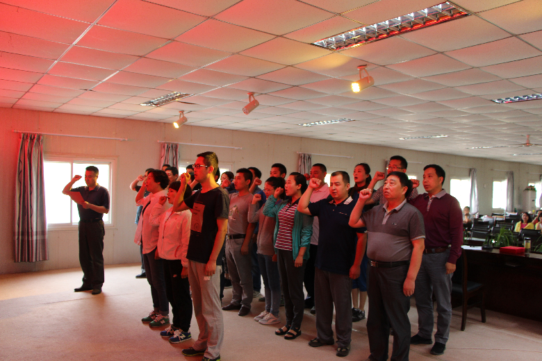 大会在雄壮的国歌声中开始。预备党员在党旗下庄严宣誓,全场党员也一起重温了入党誓词。