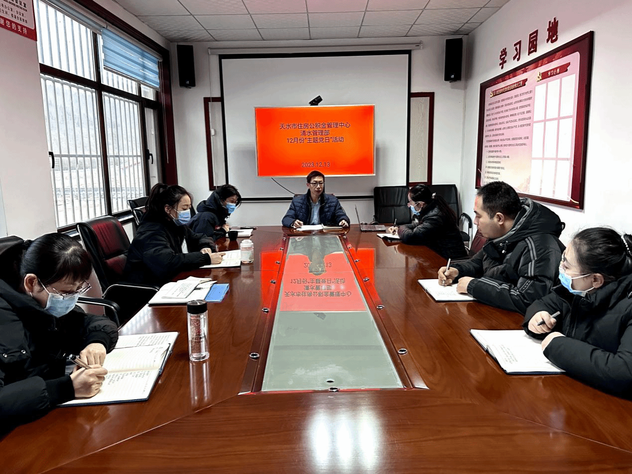12月13日上午,天水市住房公积金管理中心清水管理部党支部组织开展了12月份“主题党日”活动,会议由党支部书记马小平主持,管理部全体党员干部参加。