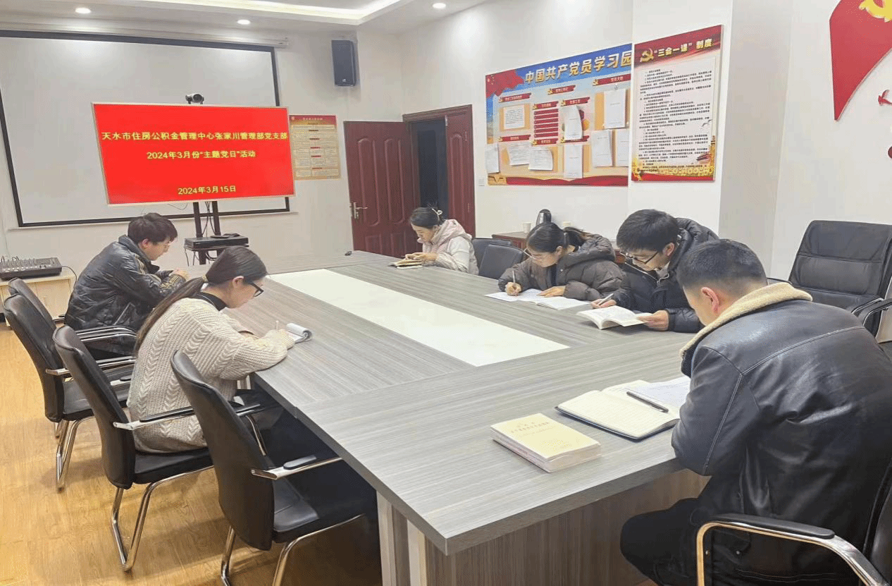 按照中心党总支要求,3月15日下午,天水市住房公积金管理中心张家川管理部召开3月份“主题党日”活动,会议由党支部书记沙文文主持,管理部全体职工及银行驻大厅客户经理参加会议。