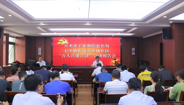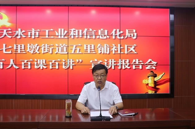 7月12日上午,天水市工信局和七里墩街道五里铺社区联合举办“百人百课百讲”宣讲报告会,邀请市委宣讲团成员、市委党校副教授赵具安做了题为《努力提升创新能力推动天水工业高质量发展》的辅导报告。会议由市工信局党组副书记蔡全增同志主持,市工信局在家领导和全体干部职工、七里墩街道五里铺社区部分党员干部代表聆听了报告。
