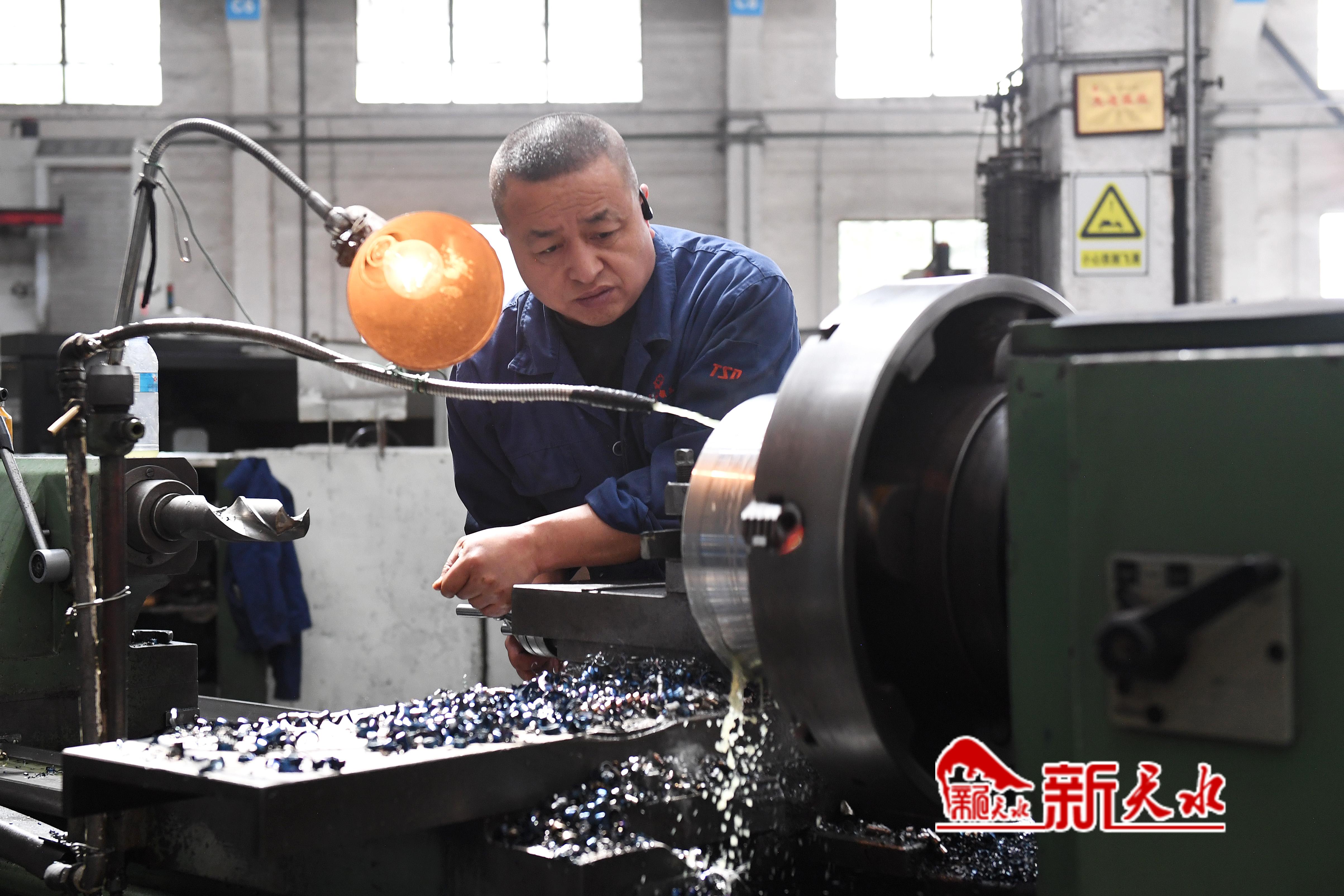 4月9日,天水锻压机床(集团)有限公司工人在加工零部件。今年一季度,该公司工业总产值同比增长13%,实现首季开门红。