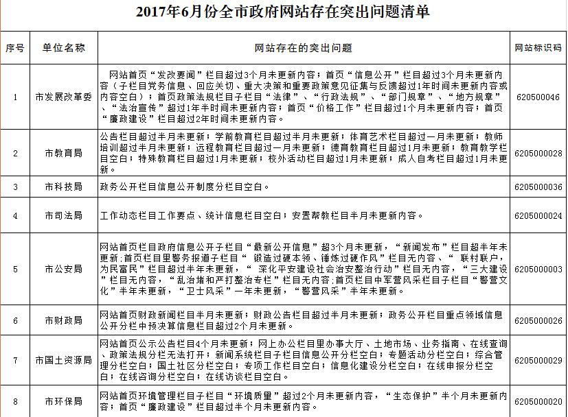 附件:2017年6月份全市政府网站存在突出问题清单