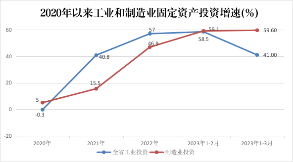 1-3月,全省工业固定资产投资同比增长41%,增幅较上年同期回落16.6个百分点,较1-2月回落17.5个百分点。