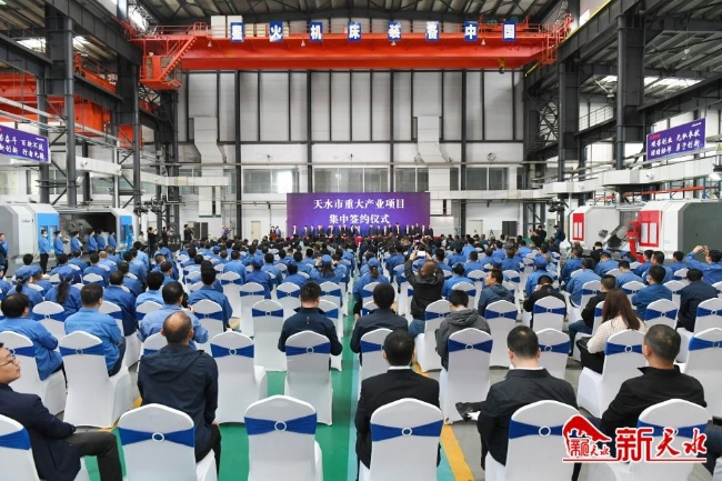 9月28日,天水市重大产业项目集中签约仪式在天水(国家级)经济技术开发区星火机床公司重型装配车间隆重举行。