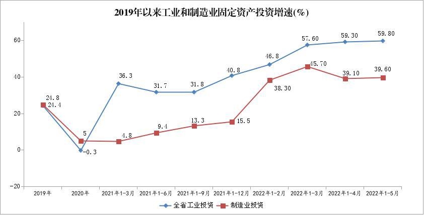 1-5月,全省工业固定资产投资同比增长59.8%,增幅较上年同期提高30.2个百分点,较1-4月提高0.5个百分点。