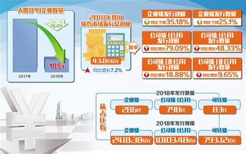 中诚信研究院统计显示,2018年我国债券市场发行总规模为43.8万亿元,较2017年增长7.2%,其中,企业债发行规模和数量同比分别下降35.18%、25.1%,公司债(公开)发行规模和数量同比分别增长79.09%、48.33%,公司债(非公开)发行规模和数量分别增长18.88%、9.65%。从占比看,企业债和公司债(公开)两类债券2018年仅发行286只、798只(公开),发行规模仅分别为2418.38亿元、10103.48亿元,可转债全年发行83只,规模仅为793.12亿元,这些广义上的公司信用类债券占整个债券发行规模的比例远远小于政策性金融债、地方政府债、国债等品种。