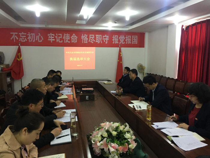 2020年4月10日,中共天水市供销合作社支部委员会召开换届选举大会,严格按照规定程序开展党支部换届选举工作。