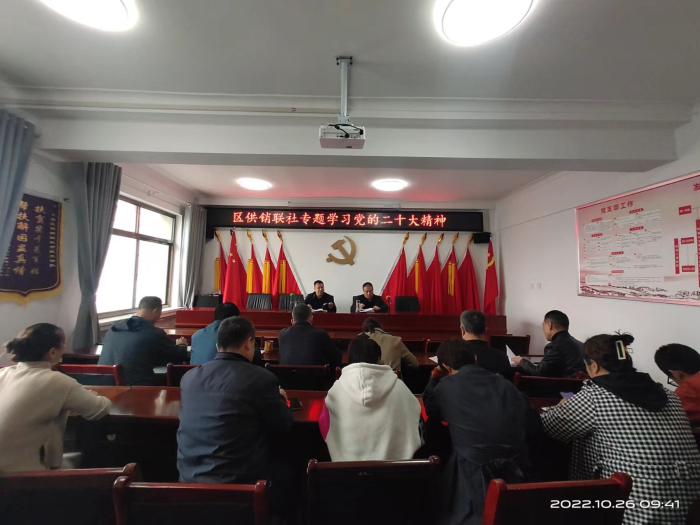 会议指出,中国共产党第二十次全国代表大会,是在全党全国各族人民迈上全面建设社会主义现代化国家新征程、向着第二个百年奋斗目标进军的关键时刻召开的一次十分重要的大会。习近平总书记所作的重要报告,举旗定向、高瞻远瞩、统揽全局,通篇闪耀着马克思主义的真理光辉,充分展现出高度的历史自觉、坚定的历史自信、强烈的使命担当、深厚的为民情怀。区供销联社要把学习好、宣传好、贯彻好党的二十大精神作为当前和今后一个时期的首要政治任务,认真学习领会,深刻把握精神实质,把思想和行动统一到习近平总书记重要讲话精神上来,切实增强维护核心的思想自觉和行动自觉。