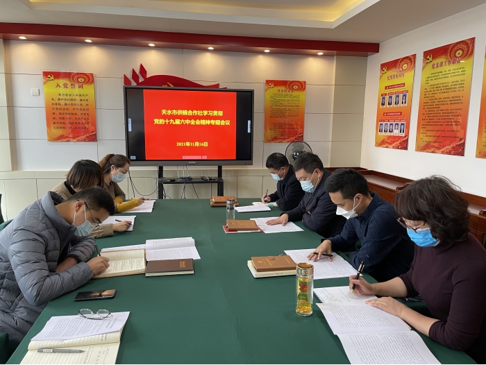 11月16日,市供销合作社召开党组理论学习中心组(扩大)会议,专题学习党的十九届六中全会精神,对市社机关及全市供销系统学习宣传贯彻落实党的十九届六中全会精神,统筹抓好当前疫情防控和重点工作作出安排,提出明确具体要求。
