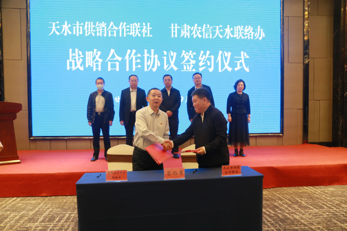 在签约仪式上,省农村信用社联合社天水联络办公室主任杨子江介绍了全市农合金融机构基本情况及相关政策;市供销联社主任庞世忠介绍了全市供销社系统改革发展及融资需求情况;双方签订了战略合作协议。
