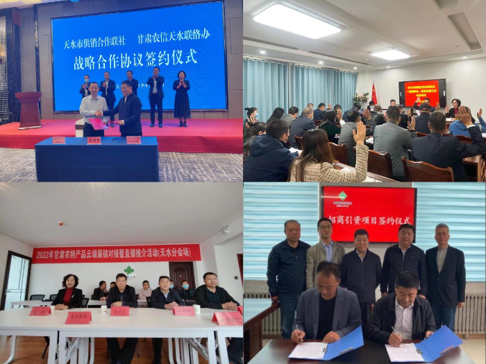 (甘肃省供销联社理事会主任李书敏、天水市委书记冯文戈、副市长刘国军出席2022年全国农产品产销对接助力乡村振兴(甘肃)——“甘味”农产品线上对接天水主会场活动)